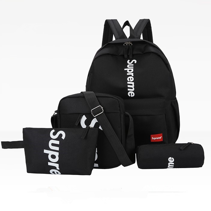 Ready Stock Black Backpack 4 In 1 Set Supreme Backpack Unisex Women Men Backpack School Bag Fashion Bag Shoulder Bag Shopee Malaysia